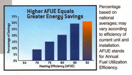 Whether you're in the market for a new heating and cooling system or if your existing system needs to be updated, always consider installing a high efficiency system. Remember the higher the AFUE rating (furances) or SEER rating (air conditioners), the bigger the energy savings for you.